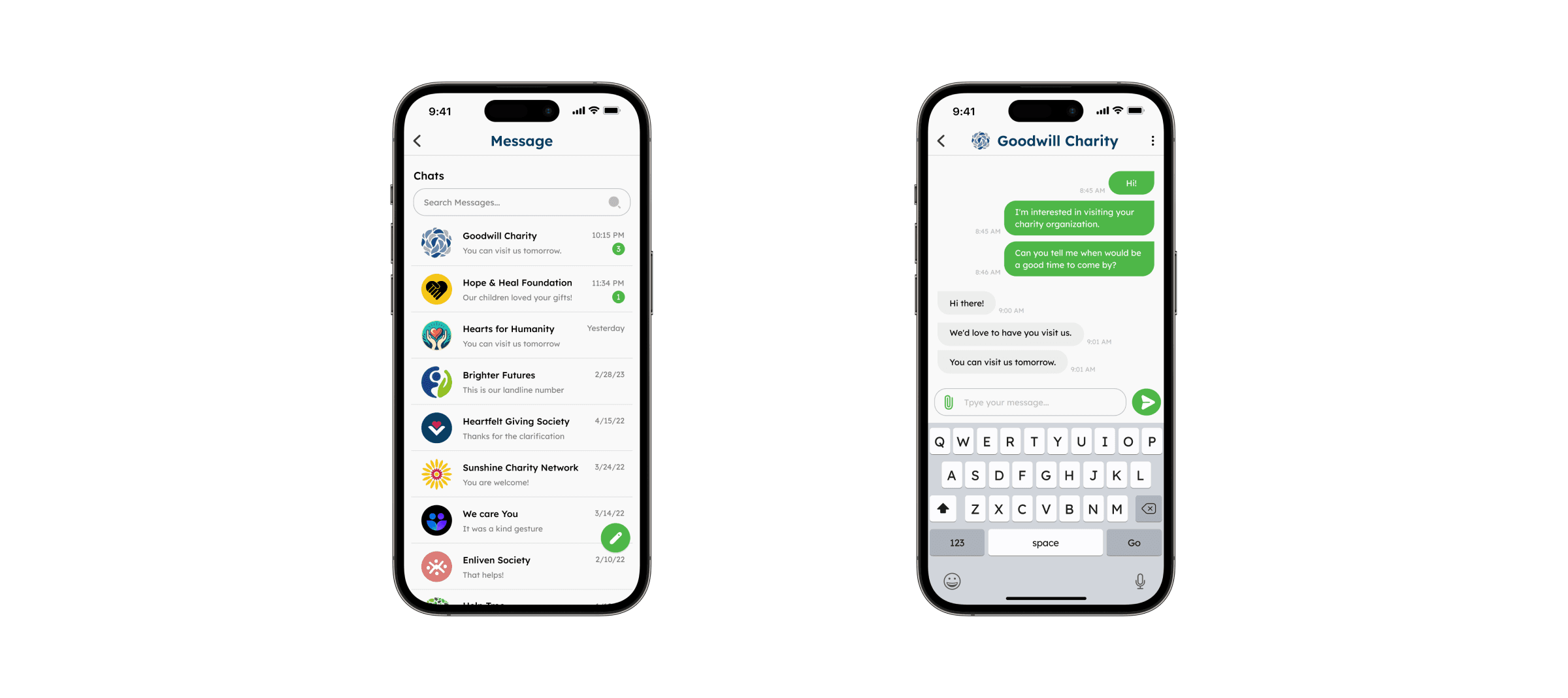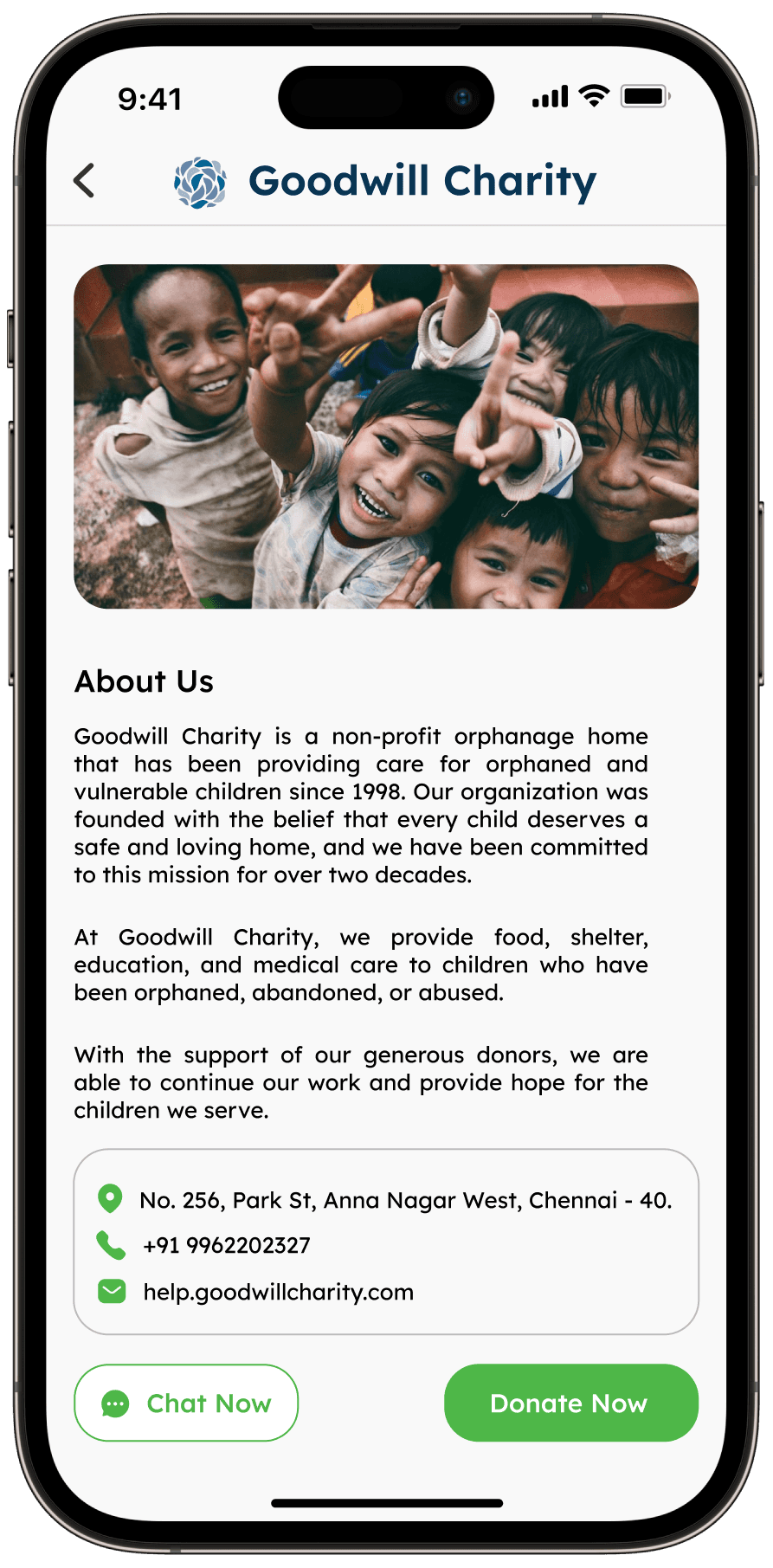 Donors can use this in-app messenger to communicate with the charities to get the information or clarification needed and need not go in search of the contact information of those charities anymore.