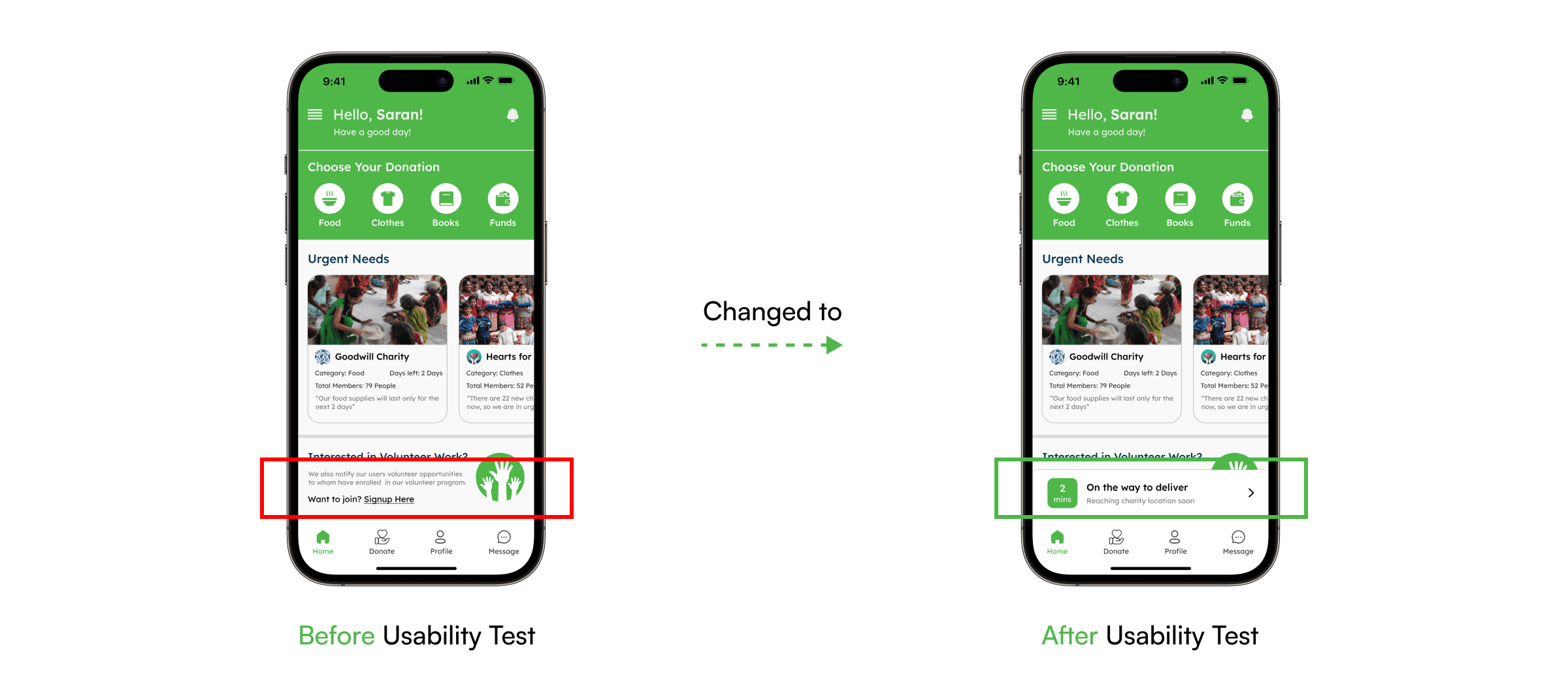 They were particularly happy with the donation pickup and delivery service, expressing their happiness at how convenient it makes the process. However, few users noted the need for real-time progress updates during ongoing donations on the home screen.