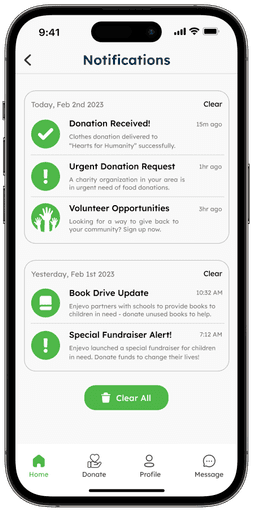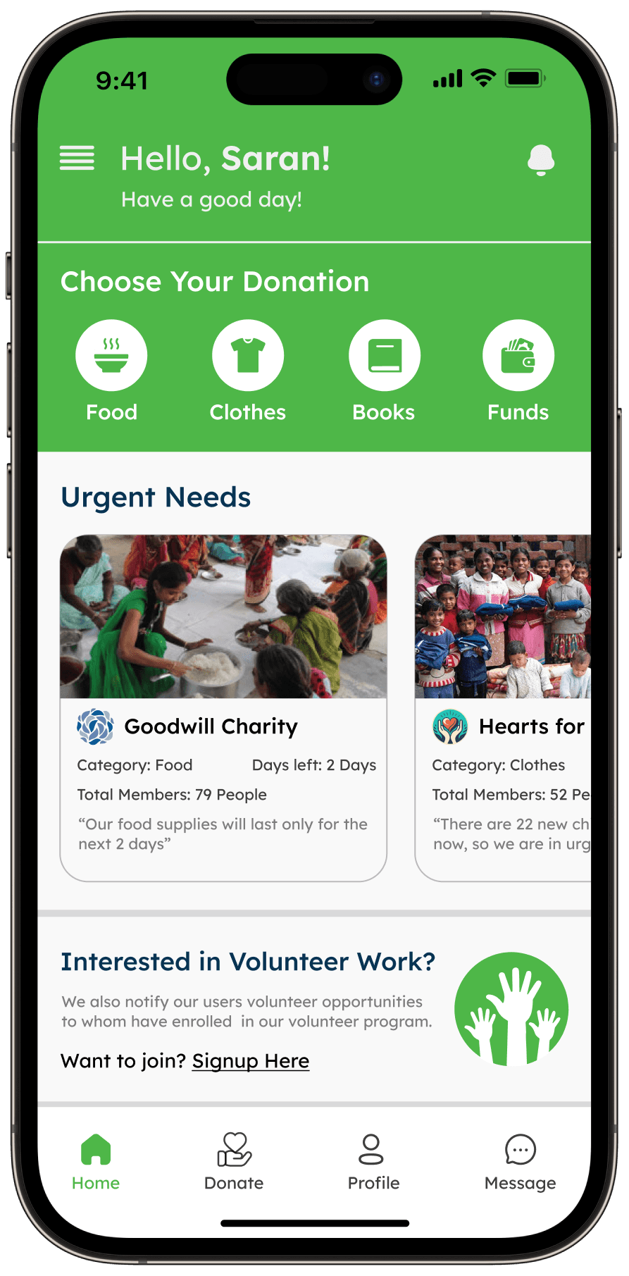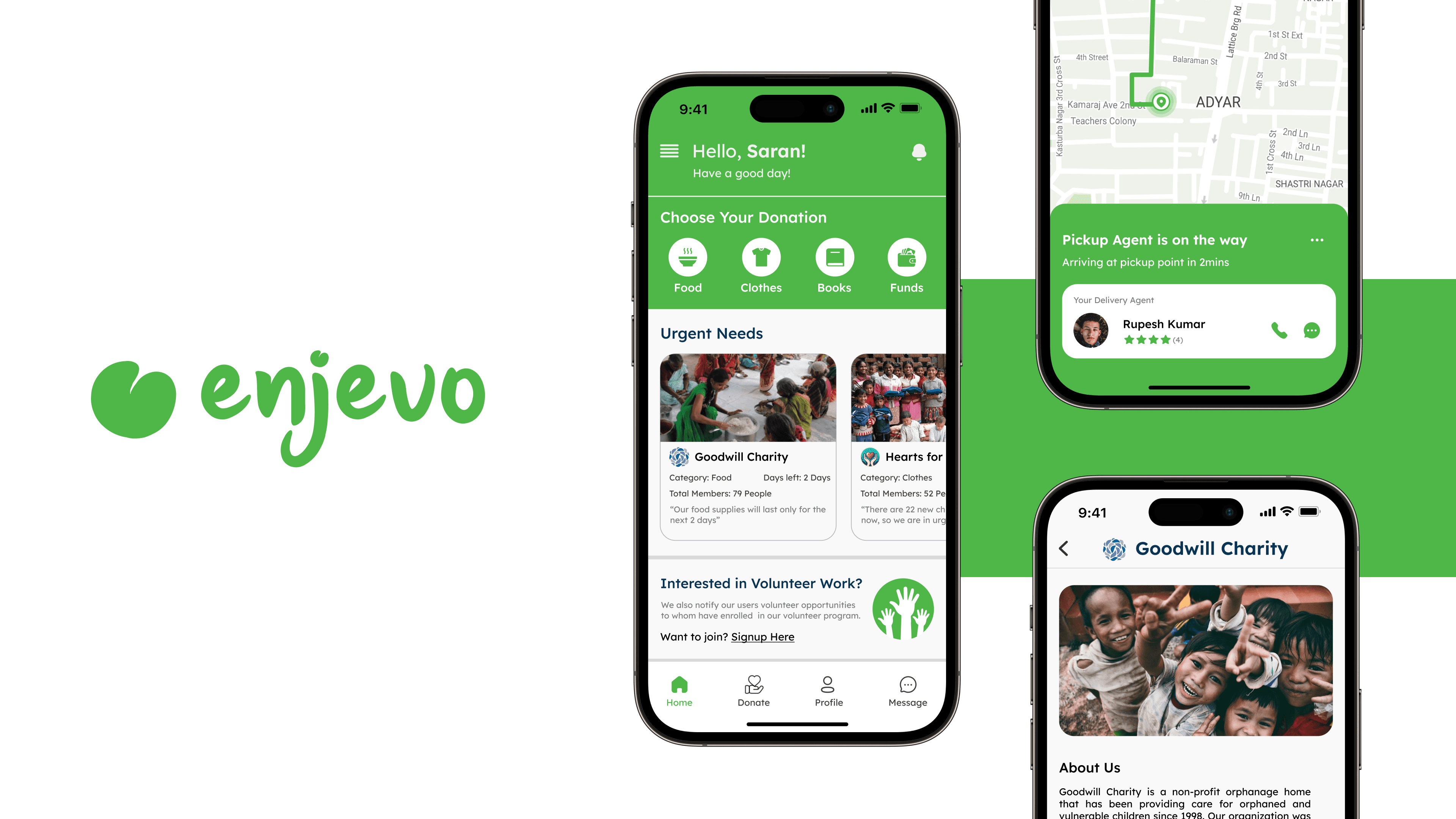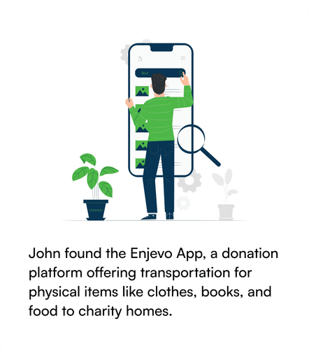 Enjevo simplifies the donation process by consolidating multiple donation needs into a single platform, enabling users to donate and volunteer effortlessly.