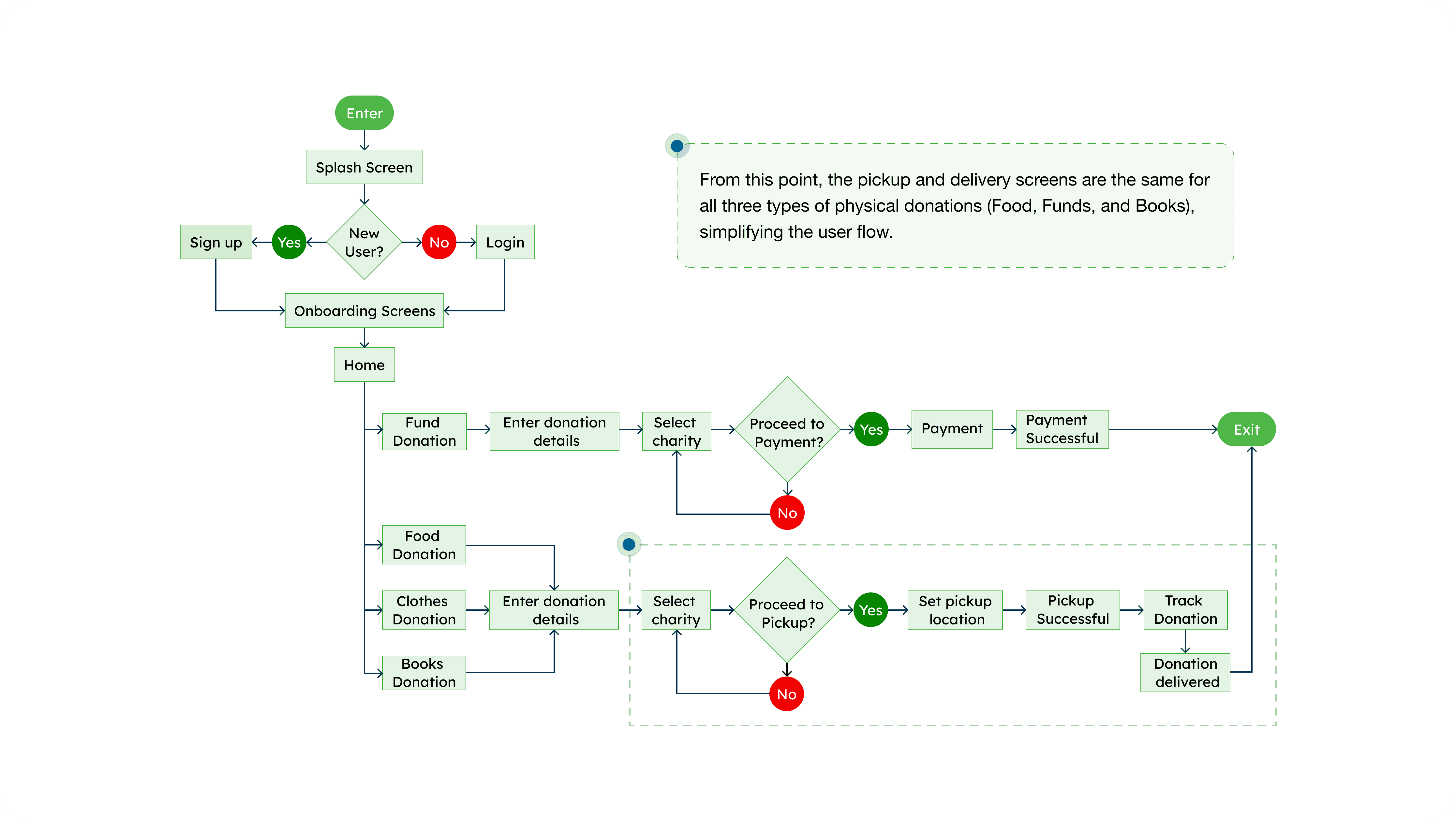 I created user flow diagram to get a clear picture of the path that a user follows to accomplish a specific task.